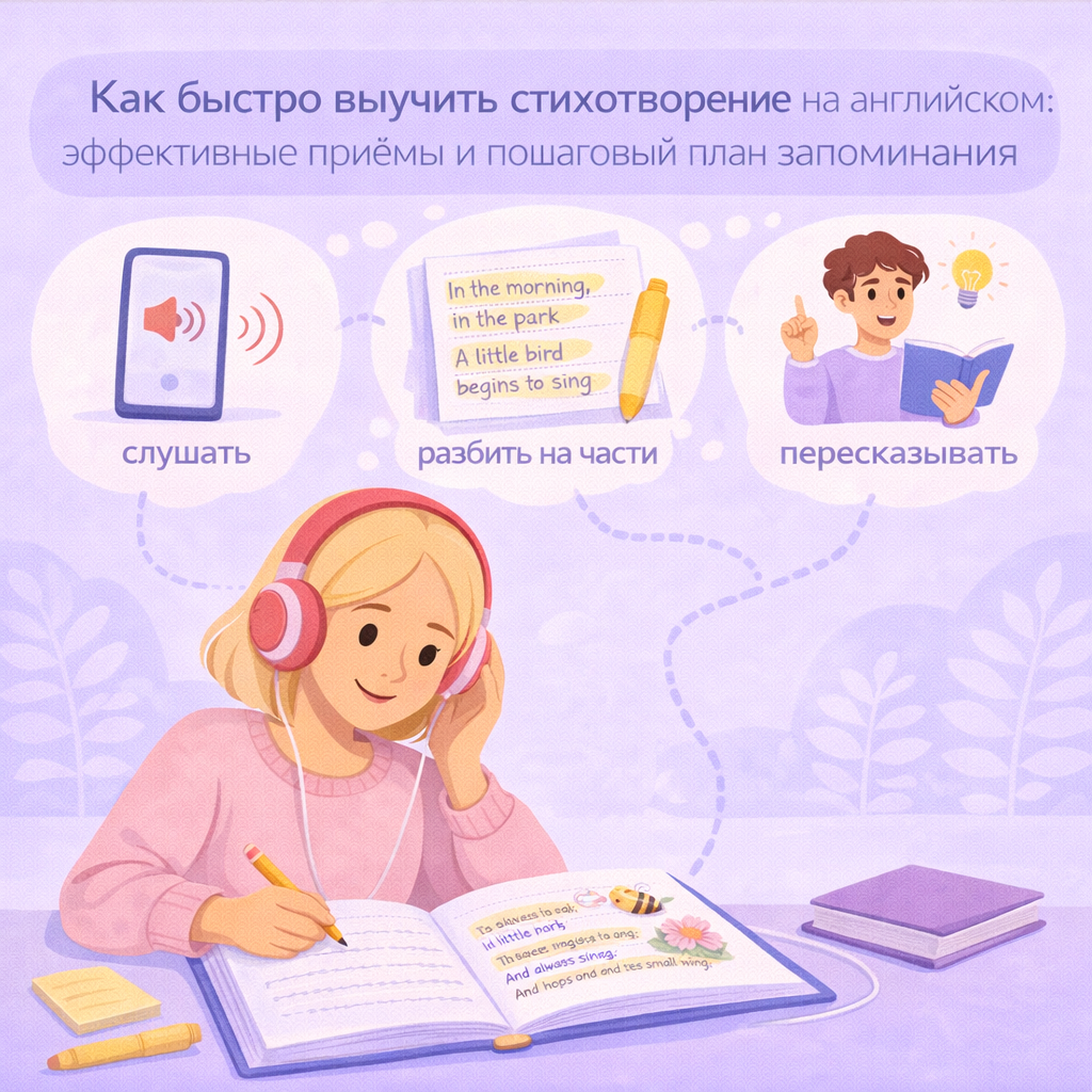 Изучение языка с помощью стихотворений – одна из современных методик освоения языка. Считается, что такой формат обучения прост и эффективен, потому как зарифмованные строки стихотворения легко запоминаются.